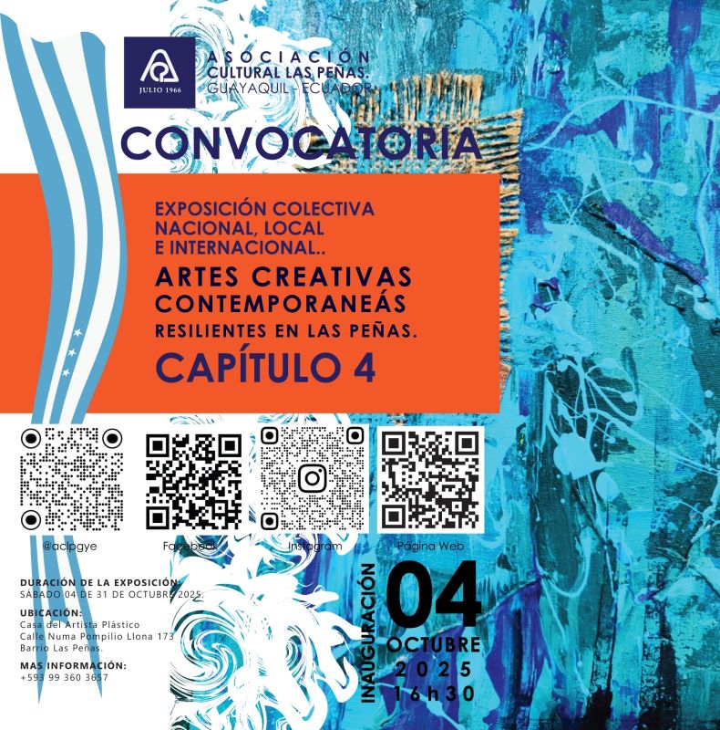 La Asociación Cultural Las Peñas invita a artistas plásticos de Ecuador y del mundo a formar parte de una nueva edición de su emblemática exposición colectiva, que celebra el arte como lenguaje de resiliencia, memoria y transformación.